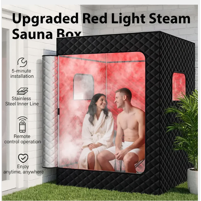 I deal with chronic muscle tightness and this sauna has helped me more than I expected. The steam feels soothing and the red light therapy seems to help with circulation and overall recovery. It’s sturdy, well-made, and the fact that it’s designed for two people was a big plus. Very happy with this purchase.